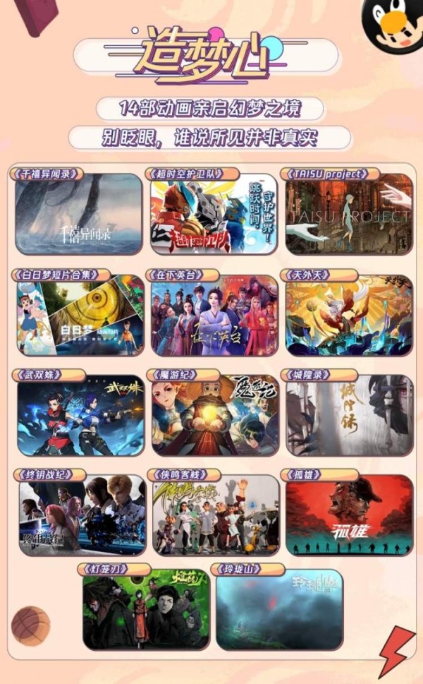 发布会上,腾讯在线视频副总裁、总编辑王娟分享了腾讯视频将以“诚心、信心与决心”的平台态度,以精益求精的创作理念全情投入精品内容制作,携手用户与行业伙伴共同创造国漫产业滚烫的未来。而此次发布会公布的涵盖青春心、好奇心、侠义心、英雄心、快乐心、未来心、造梦心七大类风格作品,也彰显当前国漫的多元发展——