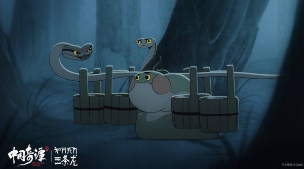 在《如何成为三条龙》中,创作团队在视觉细节上注入了本土化考据。杨木提到,三条小蛇的形象分别参考了中国本土的乌梢蛇、黑眉锦蛇和翠青蛇。影片还将国家级非物质文化遗产“傩戏”的面具与仪式动作,自然地编织进叙事中。