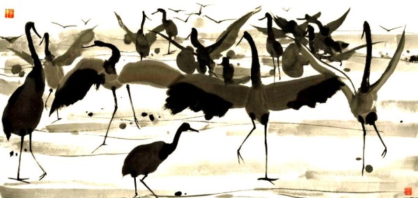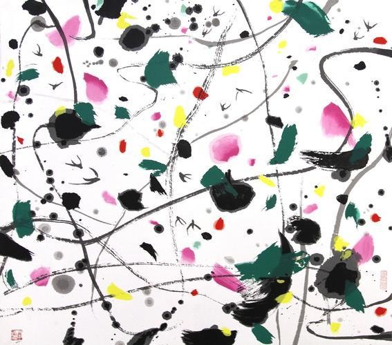 吴冠中在2002年进一步阐释了艺术与美的关系。他指出,音乐通过时间的变化来传递美感,而绘画、建筑和雕塑则通过空间的不同构成来展现美感。此外,书法作为一种独特的艺术形式,不仅通过线条的流动传递着音乐般的韵律之美,更通过线条对画面的巧妙分割,展现出结构与空间的美感,印证了古人“笔迹者,界也;流美者,人也”的精辟论述。