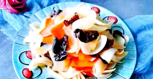 首先,将干木耳用清水浸泡至发胀,同时将胡萝卜去皮后切成细丝,青椒去籽后也切成细丝。在锅中加入食用油,烧热后放入蒜瓣和小米椒爆香。然后,加入胡萝卜丝和青椒丝进行翻炒,炒至食材变软后,倒入调好的酸甜汁,翻炒均匀并收汁。