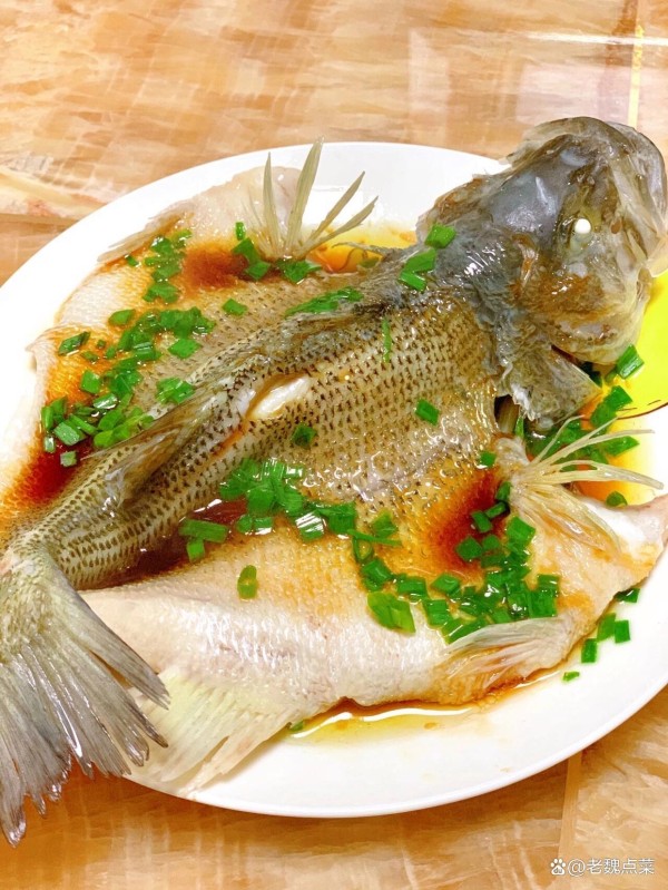蒸好后倒掉盘中的汤汁,撒上葱丝,淋上 2 勺生抽,再浇上一勺烧热的橄榄油即可。