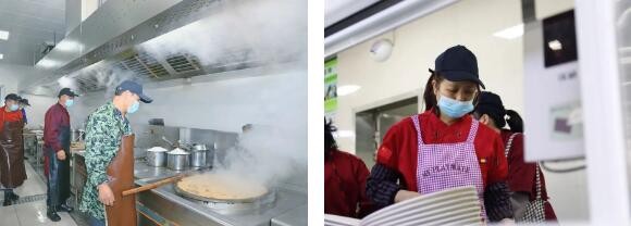 凌晨3点,她在“非员工不得入内”的后厨,为两个半小时后的早餐忙碌着,后厨里灯火通明。洗菜、备菜,配合着其他师傅们和面、揉面、调馅。在她们手掌的穿梭中,一个个奶黄包、梅干菜包、猪肉包、花卷、馒头逐一放进蒸笼。当包子的香气开始弥漫时,热腾腾的鸡蛋和黑米粥也出锅了。陈大姐亲手将营养搭配均衡的饭食盛到同学们的碗里,同学们吃饱开始一天的学习,时间就到了7点钟。她和他们开始准备午餐。几位大厨们精心定制营养食谱,避免油腻和辛辣,荤素搭配,在几口不同的锅里翻炒不同的美食。10点陈大姐开始吃中饭,在小编为后厨洁净明亮的卫生环境赞叹时,陈大姐告诉我们,“同学们吃什么菜我们就吃什么菜,请大家放心。”随后是11:30的午餐和17:00的晚餐,在同学们用餐过程中,陈大姐和她的同事们会细心询问同学们对于饭菜的意见建议,不断根据同学们的反馈调配食谱。19:00清洗完餐具后,一天的工作结束了。后厨温度最高时能达到40多度,但他们不论四季,细酌三餐之味,让同学们绽放味蕾,吃得营养、吃得健康。