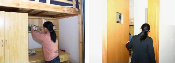 不言疲乏,她时刻陪伴左右,传递温暖。每天5:30张阿姨准时起床,5:45开始叫醒学生。她心疼地说:“我知道孩子们晚上学习辛苦,所以都会进到房间拍拍他们,叫醒他们。”孩子们走后她会对每个房间进行检查整理,清扫楼道等公共区域。午休时她会监督孩子们回来安静休息,看到寝室内还在看书的同学时,会轻轻把门关上。她说:“孩子们学习努力,平时听话,很好管理。”就好像在讲述自己孩子般充满欣慰和骄傲。晚上同学们上床后,她会查验人数,对不在寝的同学向班主任核实情况。夜间她时刻关注同学们的情况,对夜间生病不舒服的学生她会陪伴安抚,及时联系班主任及医务室,直至孩子情况安稳,交到家长手中,她才放心离开。“阿姨,我课本忘记带了。”“ 阿姨,我和宿舍同学闹矛盾了,不想回去睡了。”“阿姨,可以帮我缝一下裤子吗?” 这些是张阿姨常听到的话,每次她都会耐心开导,尽心帮助。她说,孩子们父母不在身边,我们就是他们的父母。