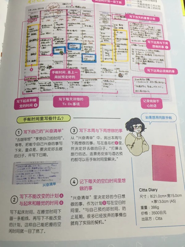 回归到手账最原始的功能——安排计划和记载想法上来说,规划类手账的实用案例和分享真的少之又少。《日经女性》杂志则发挥杂志本身的优势,挑选了36位手账深度用户,通过展示分析她们的手账内页,展示了通过手账实现梦想的无限可能。