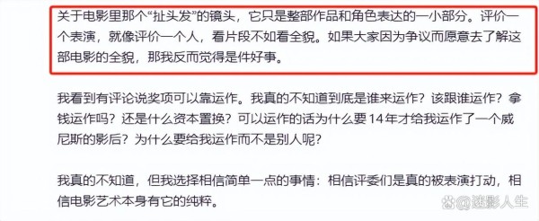 这么一来,网友又把矛头对准了刚拿到威尼斯电影节影后的辛芷蕾,影内情节正合郝蕾在小作文中特指的“女演员扯头发”。