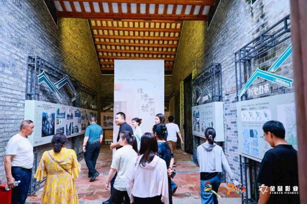 活动现场,“见微知影”影视置景道具艺术展、湾区影视文化交流会、“光影有声”新桥粮仓电影文化历史陈述展、邮票上的“思政课”邮票展等活动在清平古墟内同期进行,吸引了众多企业代表及市民到场参观。其中“见微知影”影视置景道具艺术展邀请行业美术师、道具师,结合古墟风貌设计横跨清末、民国、改革初期等多个时空的“置景艺术墙”,供观众打卡体验、近距离感受影视工业的凝结匠心,营造独特的时空穿越感。