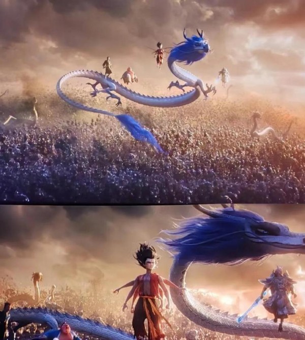《哪吒2》在视觉效果上实现了质的飞跃。138家纯国产团队合作打造的特效场景(如土肥坡大战的水墨粒子渲染、天元鼎的青铜质感)被海外观众评价为“不输好莱坞”。导演饺子坚持自主创作,拒绝依赖国际团队,最终以“精益求精的诚意”呈现了兼具东方韵味与科技感的画面。例如,影片对《庄子》中“浑沌凿七窍”寓言的视觉化呈现,既是对传统文化的致敬,也是对动画表现力的突破。