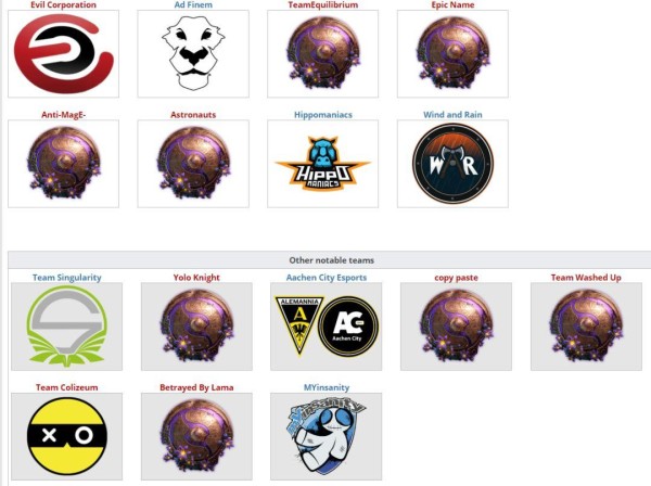 (上面八支战队为欧洲区海选A轮8强战队,下面Team Washed Up为Bulldog所在战队)