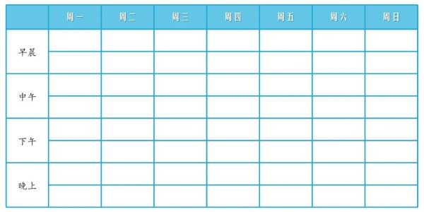 这样你就能知道自己有多少空闲时间,然后开始计划你想做的其他活动,记住要把握好节奏,要给自己留出忙里偷闲或放松的时间。