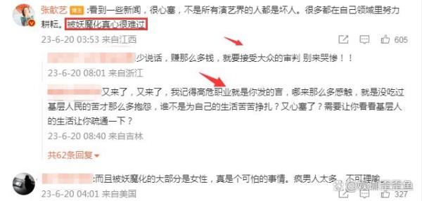正与老公袁弘合体录制综艺的张歆艺,在评论区接着说“看到一些新闻(台娱丑闻),很是心塞,不能扼杀努力耕耘之人,被污名妖魔化真心难过”。怎料,网友们并不买账,质疑称“赚那么多钱,就要接受大众的审判,别来哭惨”!“没吃过基层人民的苦才那么多抱怨、感触”?