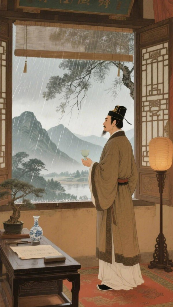 这首诗的妙处,正在于这种“化工笔”,看似不着力,却意境自成。诗人从自身的“冷”想到友人的“苦”,从送酒的“暖”想到寻迹的“难”,情感几经转折,最终归于一种空灵的怅惘。这“风雨夕”里的雨,虽未直接描写雨声雨景,却通过诗人的关切和行动的受阻,成为推动情感发展的重要背景。它不像白居易雨中的直抒胸臆,也不似李商隐雨中的时空跳跃,韦应物的这场雨,更像是友人间心意相通却又相隔遥远的一种淡淡的愁绪和无奈的牵挂,含蓄而隽永。