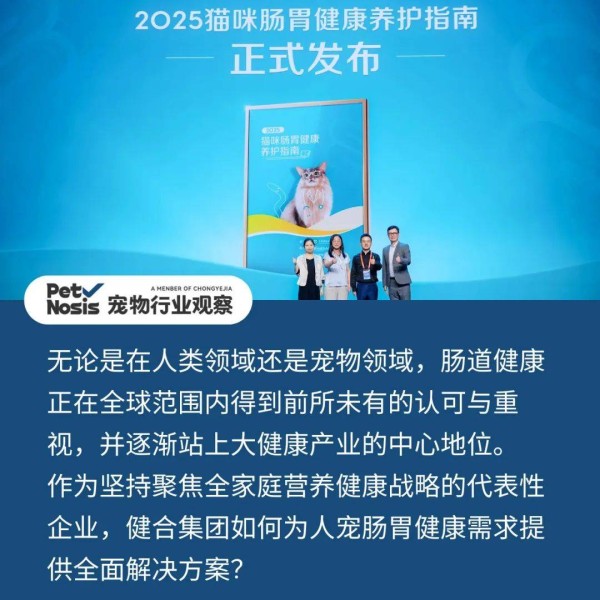 健合集团旗下高端猫咪全营养品牌素力高拥有51年宠物肠道健康研究经验,始终将产学研融合视作未来驱动宠物营养健康发展的重要力量。《指南》中所倡导的“循证养护”理念,与素力高坚持“以科学实证驱动创新”的底层逻辑是不谋而合的。借助本次《指南》发布的契机,素力高希望联合权威机构、行业专家及同行的力量,通过科普专业的肠道护理知识,帮助宠物主走出认知误区,同时给予市场更专业、更科学的产品指导。