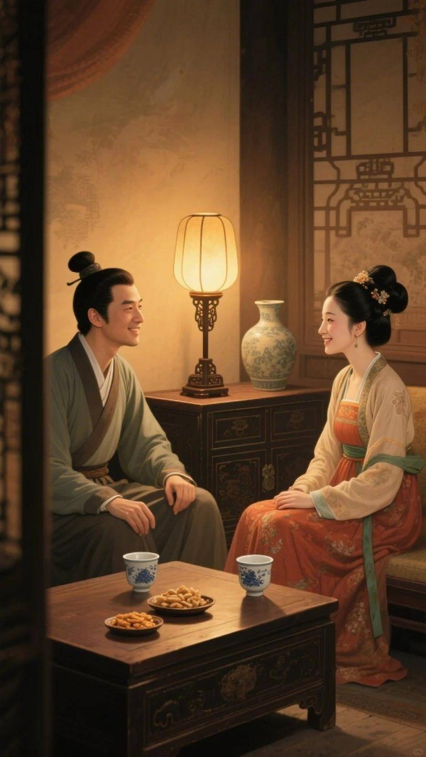然而,即便心有怆然,亲人相聚的时刻,总能带来慰藉。第二联“草草杯盘共笑语,昏昏灯火话平生”,便是这首诗中最能体现“悠闲自得”的片段,尽管这种悠闲是短暂且带有背景色的。“草草杯盘”,说明酒菜并不丰盛,只是随意准备了一些。这“草草”二字,恰恰反衬出兄妹间深厚的感情,无需繁文缛节,无需盛大排场,能够相见,能够坐在一起说说话,便是最大的满足。