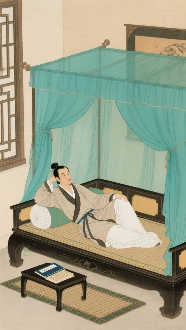 上片起首,“凉簟碧纱厨。一枕清风昼睡馀。”夏末秋初,天气依然有些炎热。词人躺在清凉的竹席上,外面是碧绿的纱帐。午睡醒来,枕边仿佛还萦绕着一丝清风,睡意未消,带着几分慵懒。这“凉簟”“碧纱厨”“清风”,共同营造了一个清爽宜人、适宜安眠的环境。一个“馀”字,点出午睡后的闲散状态。这悠闲,首先是身体上的放松与舒适。