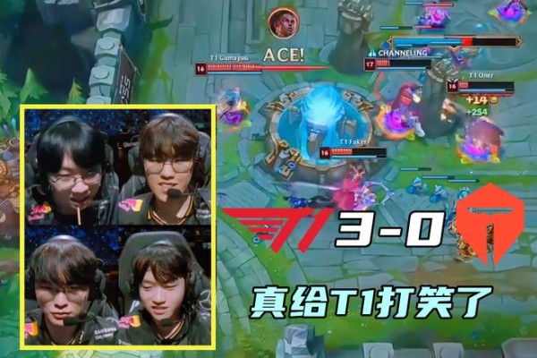 而拿到人头的Kanavi也没有站出来Carry,反而在团战中频频被秒,打到最后,滔搏都开始昏头了,没有了一丝战意,最终也是0-3溃败。在这场BO5中,也是出现了两件趣事,第一件是T1这边队员的表现。明明是四强赛,按理说压力应该拉满,可第一局打完后,他们仿佛就看出了双方的实力差距,打困了都还好说,主要是都打笑了,看得LPL观众也是很难顶,都觉得滔搏又变陀螺了。