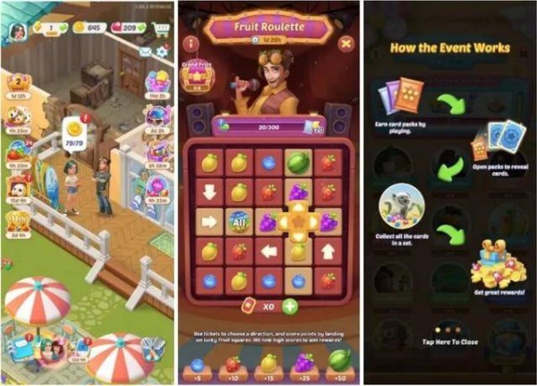 中国厂商最擅长的就是做加法,《Gossip Harbor》也融入了很多Slots或轮盘机制小游戏,包括一系列可重复利用的模块化运营活动体系。柠檬微趣把休闲游戏当作开放世界级别的产品形态调整优化,难怪老外玩套路也干不过中国公司。