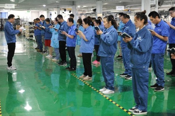 ▲员工晨读《熊谷企业文化手册》