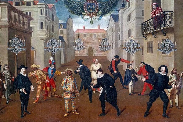 意大利即兴喜剧是意大利的一种民间戏剧表演形式,起源于中世纪意大利的乡村方言滑稽戏。文艺复兴时期,专业剧团兴起,吸纳了以往没有组织的流浪艺人(strolling players)、杂技演员(acrobats)、街头艺人(street entertainers)和一些探险家(adventurers)。剧团开始迎合大众口味的表演形式,使用个性鲜明夸张的角色,大量的喜剧动作和方言进行表演。16世纪,意大利即兴喜剧开始大范围流行,在随后的两个世纪间传播到法国和英国等国家,盛行于整个欧洲。最早知名的意大利喜剧剧团由弗朗切斯科·安德烈尼(Francesco Andreini)和其妻子伊莎贝拉(Isabella)创立,名为“杰洛西剧团”(Gelosi),该剧团于1568年至1604年间活跃。