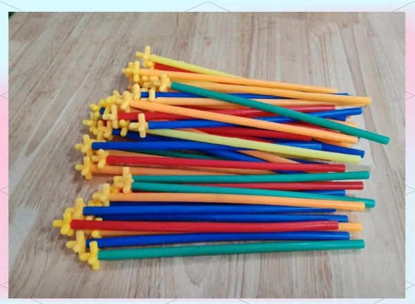 咦,你发现了吗?每根吸管上都巧妙地配有一个黄色小插头,通过与这些插头的巧妙连接,我们能够创造出无数别具一格的造型,吸管与插头的连接展示了无限造型的可能,是不是既有趣又富有创意呢?