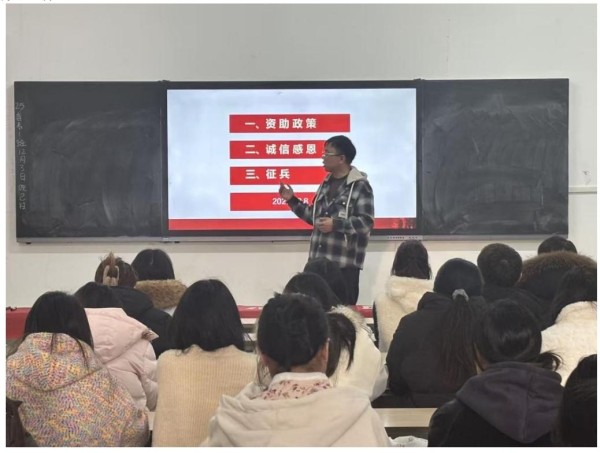 为深化资助育人工作,强化艺术学子诚信感恩意识,12月8日下午,艺术学院“感恩于心•诚信于行•励志于人”主题教育活动在艺术大楼A101举行,活动由学院罗洋老师主讲,同步融入征兵宣传,助力学子成长成才。