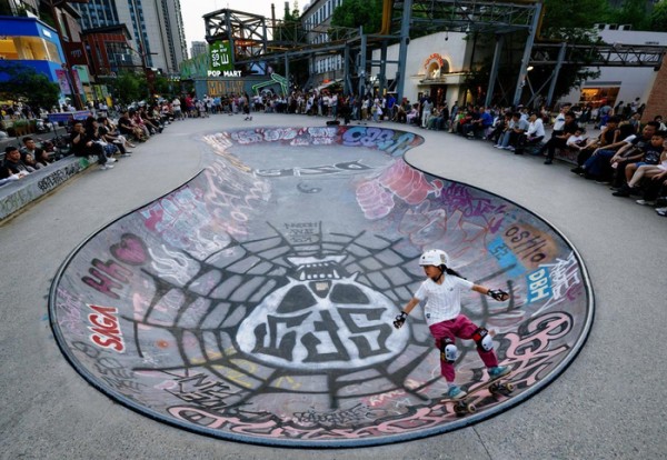 东郊记忆的滑板公园,年轻人在跳跃、旋转