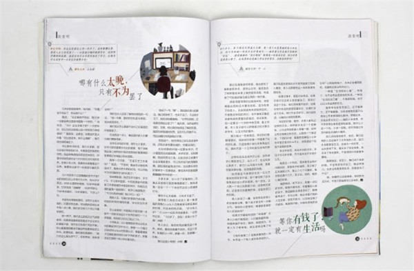 这事致力于培养和影响新一代积极、健康、豁达、平静、真实的成长和生活,使阅读成为一种享受。心中有岸,才有渡口,特别喜欢杂志里面那些经典且直戳心窝子的话。。