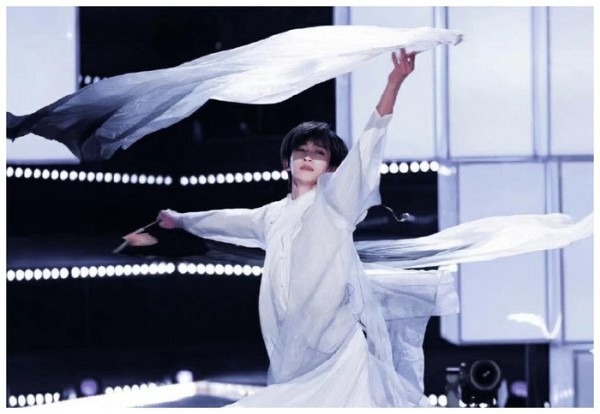 完全就是国风美少年本人了,技巧性十足的舞蹈动作,在表演的时候因为滑还踩到了自己的裙子,但是刘宇很好的解决了这个问题,棒。