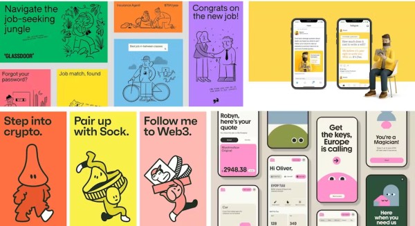 随着企业尝试拉近与用户的距离,品牌标识普遍采用无衬线字体、基础色调和小写字母,语言变得友好,插画趋向儿童化。招聘网站、保险公司甚至殡葬服务,都用这种低龄化、趣味化风格打造亲近感。创意共和认为,这种设计策略曾有效缓解公众对机构的不信任,却在长期重复使用中逐渐失去力量。