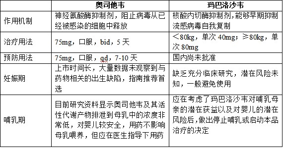 2.药物选择:目前,对于抗病毒药物,奥司他韦是国内外指南一致推荐的用于妊娠期和哺乳期女性流感治疗和预防的首选药物,安全性数据相对最充分。