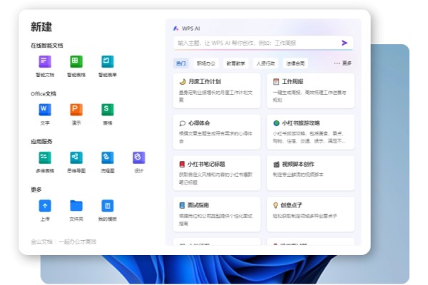 金山文档全面支持主流办公文档格式,更有专业的思维导图、流程图、表单工具等。