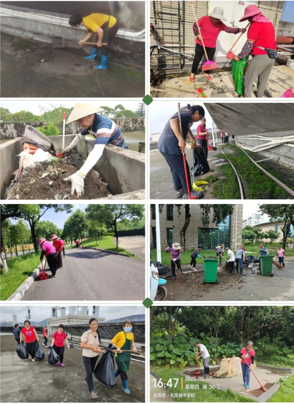 为贯彻落实《关于在东莞市范围内开展爱国卫生运动统一行动的通知》及《东莞城市学院关于深入开展爱国卫生运动防控基孔肯雅热和登革热的通知》的文件要求,进一步做好基孔肯雅热和登革热等虫媒传染病防控工作,后勤保卫部积极响应活动,组织全员做好环境卫生整治、翻盆倒罐清积水、清除蚊虫孳生环境及消杀等工作,全力保障师生健康安全,营造干净、整洁的校园环境。