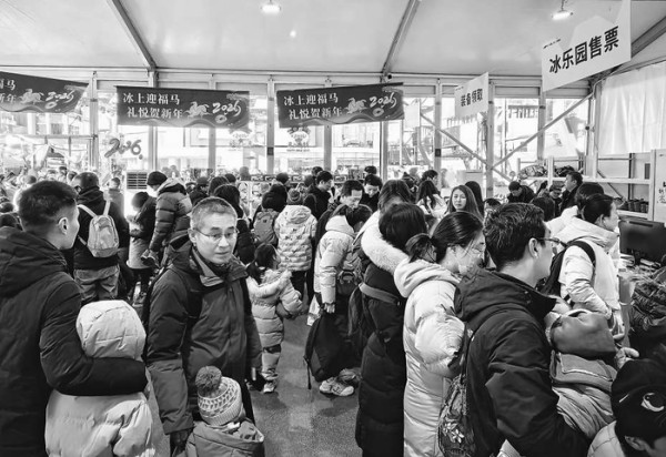 中国旅游研究院近日发布的《中国冰雪旅游发展报告(2026)》显示,经综合测算,2025—2026年冬季,我国冰雪旅游休闲人数预计将达3.6亿人次,人们参与冰雪旅游的消费热情持续高涨。图为北京一家滑冰场的售票处,市民和游客排队购票,现场人气十足。本报记者董芳忠摄影报道