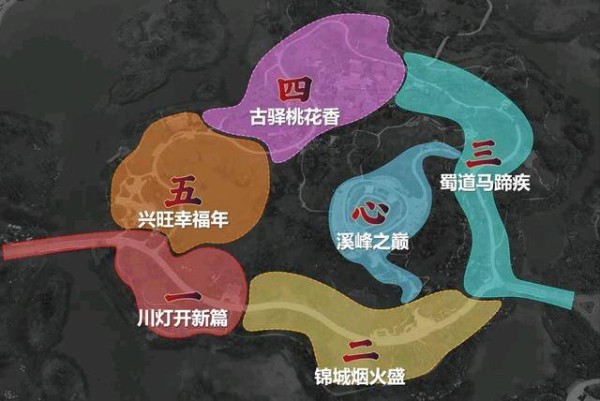 据悉,本次灯会以“川灯耀世界·梦幻东安湖”为主题,挖掘并创新活化“国宝文化、蜀道文化、三国文化、诗词文化、驿马文化、客家文化”的资源与价值,在330余亩的溪峰岛上规划形成了“五区一心”璀璨赏灯带——“川灯开新篇”“锦城烟火盛”“蜀道马蹄疾”“古驿桃花香”“兴旺幸福年”和“溪峰之巅”。