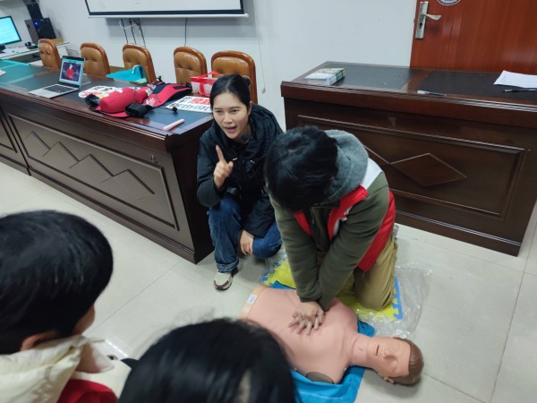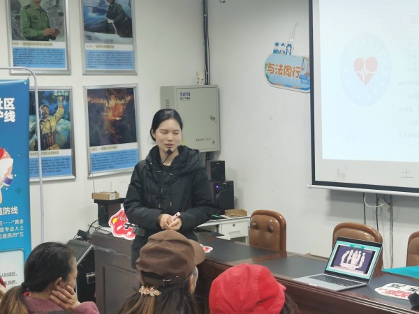 活动伊始,周老师以贴近生活的真实急救案例为切入点,用通俗易懂的语言,系统讲解了心脏骤停、气道异物梗阻等常见突发状况的识别与应对要点。她结合投影演示,详细拆解了心肺复苏的操作流程,从判断意识、呼救求援到胸外按压的深度与频率,再到人工呼吸的正确手法,每一个步骤都讲解得清晰明了。同时,周老师还针对居民常见的急救认知误区进行了纠正,帮助大家建立科学的急救观念。