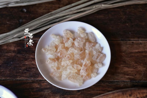 3、接着我们再准备一把冰糖,冰糖一般分为单晶冰糖和老冰糖。单晶冰糖也就是像钻石的那种然后老冰糖就是色泽黄一些的这种,两种的区别在于单晶冰糖的甜度比较高纯度比较好。黄冰糖甜度虽然差了一点点但保留有一些甘蔗的香味,为此这边我建议使用老冰糖来得更好。