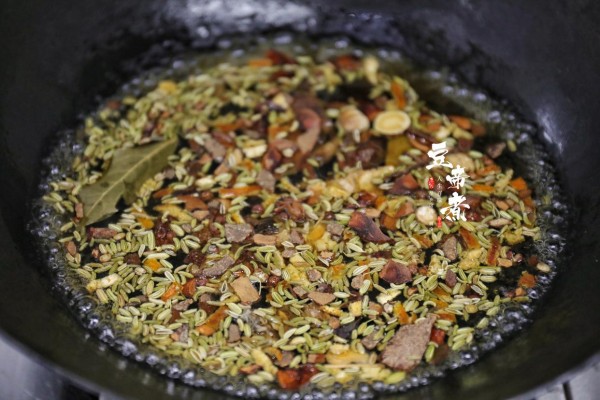 香料:陈皮1片、香叶2片、草果1个、肉蔻2个、山奈3片、八角1个、白蔻2个、桂皮2片、小茴香1小撮