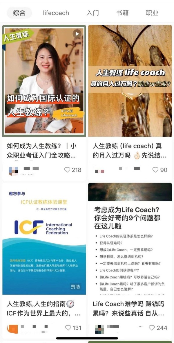 近年来,“人生教练”在社交媒体上悄然走红。根据ICF(国际教练联合会)统计,截至2024年2月,全球认证教练人数已突破5万人,虽然中国大陆的人数虽然还不足2000人,但已经有一大批人在来的路上——在小红书上搜索“人生教练”,会跳出18万+篇笔记,绝大多数表示自己正在申请ICF的认证。