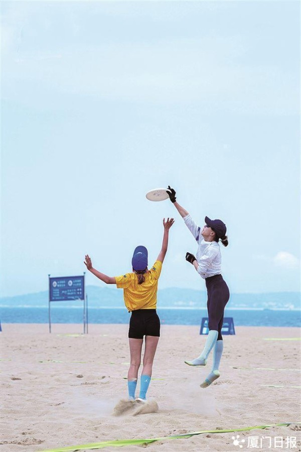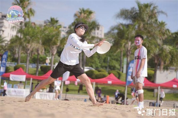 厦门沙滩飞盘赛吸引众多爱好者。