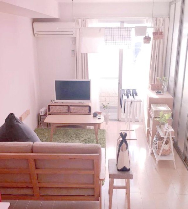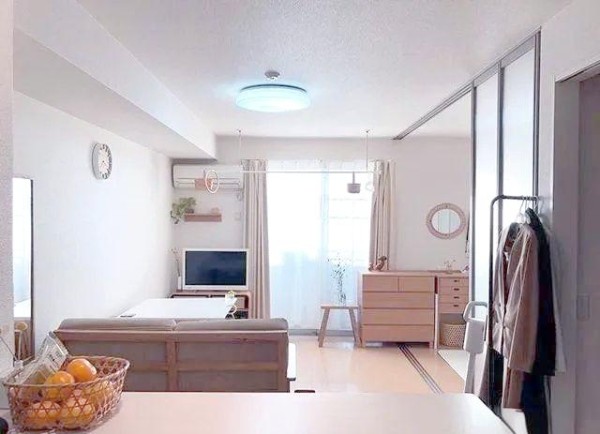 这位日本女生的 单身公寓虽小,但功能齐全。这样的居住环境不仅价格亲民,而且布置得精致而温馨,非常适合一个人独居的生活方式。