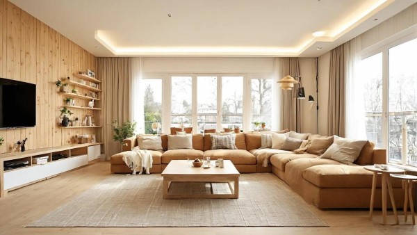 客厅作为家庭生活的中心,其收纳设计同样至关重要。通过合理的布局和精心的规划,我们可以轻松地将各类物品有序地存放,保持空间的整洁与美观,让客厅成为家庭成员休闲、聚会的温馨场所。 客厅布局合理,原木家具增添简约风格。一居室的客厅设计具有很高的灵活性。通过巧妙地布置一张原木色桌子、简易拼接沙发,再配上原木材质的收纳柜橱,整个空间在视觉上呈现出清新简约的风格。