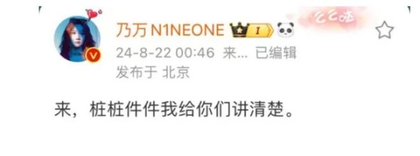 02事情起因:乃万经常在自己的社交媒体发了乙女游戏相关的内容,8月15日,她参加了某款《光与夜之恋》的线下活动,之后她激动的晒出了合影和一些周边