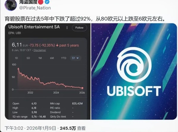 最近,游戏圈有一个热门话题——育碧股价暴跌,如今市值竟仅为5年前的8%!曾经在游戏界叱咤风云的育碧,如今却陷入如此困境,着实让人震惊。