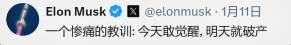 而就在这时,科技界大佬马斯克也来“补刀”了,直接转帖配文:“一个惨痛的教训,今天觉醒明天破产。”这一举动,瞬间让这场风波热度飙升。
