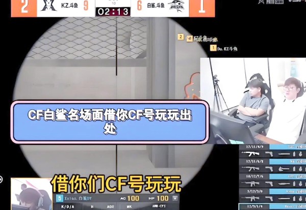 解说过程中因粉丝调侃的话语而流行,成为射击游戏圈常见调侃方式。在2024年的穿越火线圈中,一个新梗悄然兴起。10月27日,2024CFS中国区预选赛复活赛第二轮展开激战,BS战队以1比3不敌KZ战队,无缘本年度世界总决赛,三连冠梦想也随之破灭。这场比赛由俱乐部老板同时也是穿越火线顶级主播的白鲨进行线上解说。在直播过程中,一条弹幕“先别说别的,借你CF号玩玩”让郁闷中的白鲨情绪失控。这一事件后,“借你号玩玩”开始在射击游戏圈中广泛流传,Danking、小叮当等知名电竞主播都曾在直播间收到过类似的借号请求。这种说法常用于调侃,意味着无法实现目标时,不妨将个人资源拿出来与大家共享。