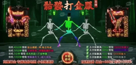 “骷髅打金服”这一梗也以其夸张的表现形式和魔性的音乐混搭,成为了网络上的热门话题。它起源于一款类传奇网络游戏的页游广告,但经过网友们的二次创作,已经裂变出了各种子分类。如今,搜索“骷髅打金服”会出现多种不同的类传奇页游,但骷髅只是作为引流的存在,这一梗已成为了一种“概念性”的宣传。