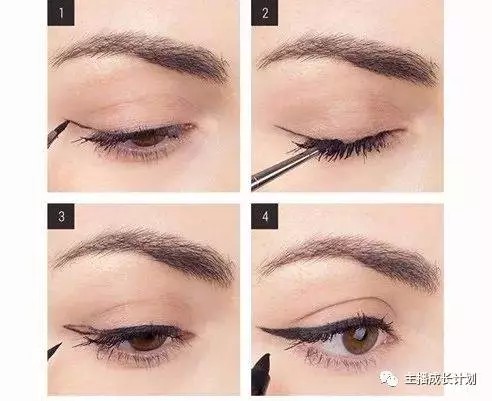 认真的描绘出一条眼线,无疑是提升眼睛美感的最佳途径,只需先用极细的眼线刷从睫毛的外缘向外勾勒一条基准线,再把睫毛上沿画好的眼线和基准线连接起来, 接下来在外眼角画出闭合的小三角形,作为羽翼的范围,最后用眼线液把小三角形填充满,稍微修正一下边缘,就得到了一只飞扬的小翅膀。