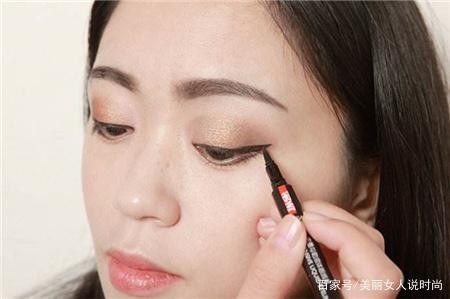 在画眼线的时候,可以先用黑色眼线笔画内眼线,然后用棕色眼线笔画外眼线,这样化出来得眼线才更自然。如果直接用黑色眼线笔会有一种细长的感觉,不够柔美。