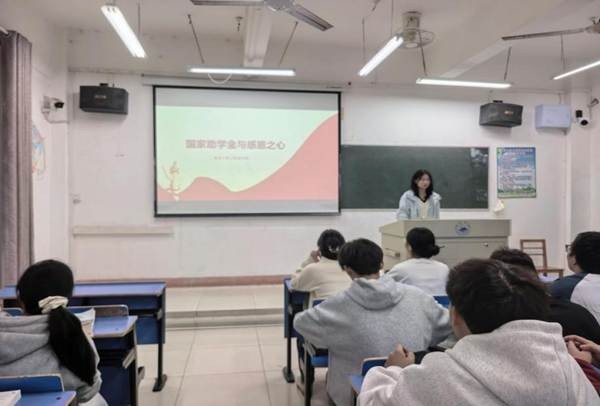 班会以“国家助学金的政策价值”为切入点,通过政策解读、案例分享等形式,向学生说明国家助学金不仅是经济帮扶,更是助力教育公平、培育青年人才的重要举措——既为家庭经济困难学生减轻学业压力,也以激励机制引导学生勤奋向学、成长为社会所需的专业人才。