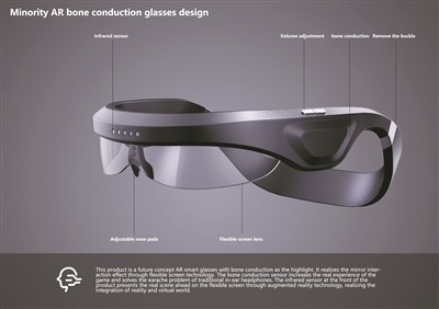 “作品创新性地使用了骨传导耳塞代替传统耳机,不仅可以显著减轻对耳朵的负荷,提高骨传导音质,真正实现开耳倾听,还为用户提供一个舒适的穿着体验;其次作品使用了开放的设计,允许用户使用时注意周围的变化,从而确保AR智能眼镜可以广泛应用于多种产品环境。”王永耀说,因为骨传导耳塞不需要插入耳朵,还可以有效解决使用者耳道被耳塞污染的痛点,而开放式的前端设计,则可以让红外传感器使用柔性屏幕技术对真实场景进行扫描并呈现给用户。