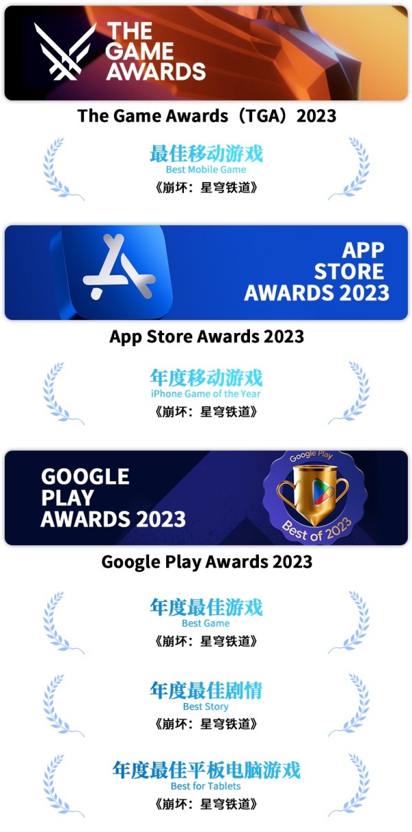 背后原因主要是头部产品盈利能力变强,个别新品也极为强势,即赢家通吃的马太效应愈发显著。典型如《崩坏:星穹铁道》取得大满贯成绩,收获App Store、Google Play、TGA评选的年度手游大奖。